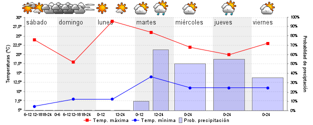 | Sens. térmica mín./máx. (ºC) | 6 / 24 | 7 / 18 | 8 / 29 | 14 / 26 | 12 / 21 | 12 / 20 | ||||