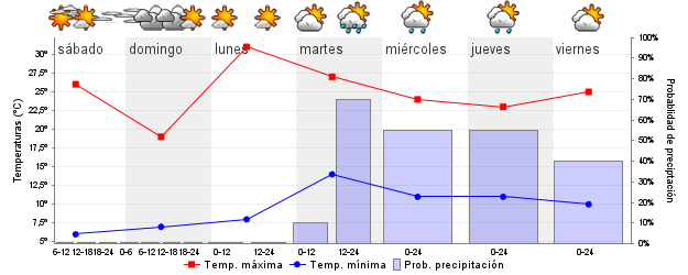 | Sens. térmica mín./máx. (ºC) | 6 / 26 | 7 / 19 | 8 / 30 | 14 / 28 | 12 / 23 | 12 / 22 | ||||
